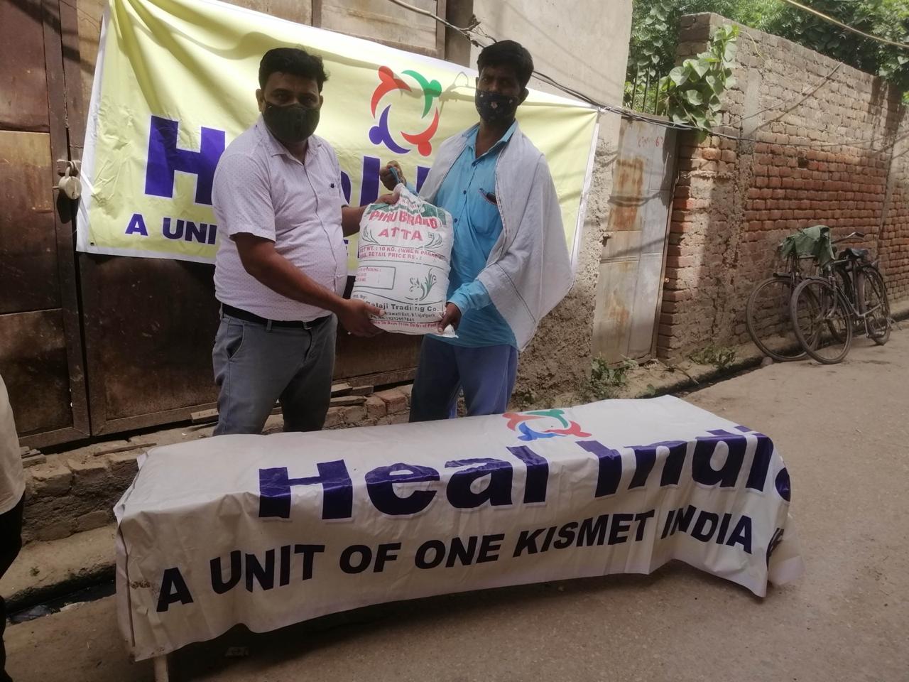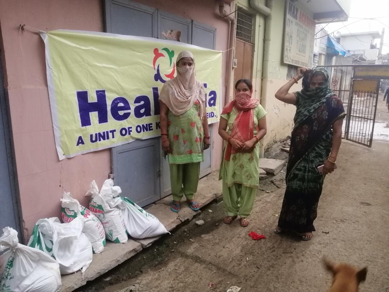 Heal India conducted a health camp for the benefit of Covid affected familiesDr.Aman and his team educated all the families regarding safety precautions to be taken during the Covid seasonRice ,wheat flour and pulses were distributed to the Covid affected families