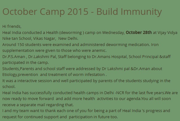 Heal India Camp October 2021