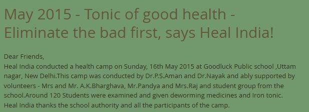 Heal India conducted yet another camp for school girls of VIJAY VIDYA NIKETAN, UTTAM NAGAR, NEW DELHI.